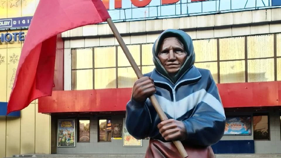 В Белгороде практически сразу после установки убрали скульптуру бабушки с советским флагом из-за попыток «вскарабкаться на скульптуру»