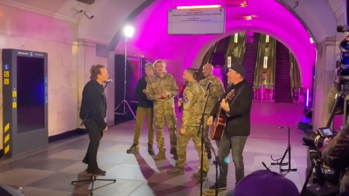 Боно из рок-группы U2 выступил с концертом в киевском метро