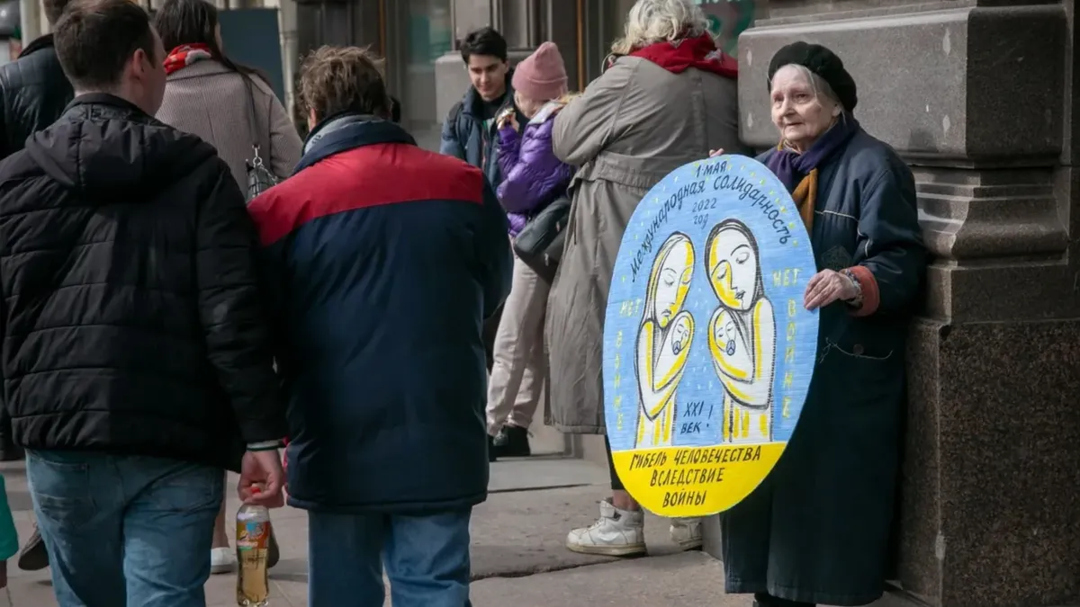 Елена Осипова с 2014 года рисует картины, призывающие к миру с Украиной, и выходит с ними на улицу.