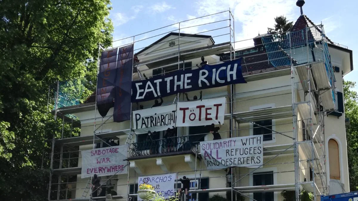 В Австрии анархисты захватили виллу Игоря Шувалова и развесили на ней баннеры с лозунгами против олигархов, патриархата и войны