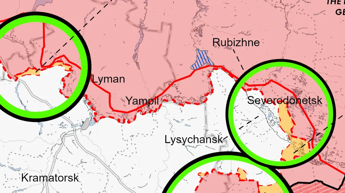 - •Идет уже 111-й день войны России против Украины. Российские войска провели наступательные операции в Северодонецке и вытеснили украинские войска от центра города, но полностью его не захватили, заявили в Институте исследования войны (ISW). Также, как заявили эксперты, войскам РФ не удалось перерезать украинские наземные линии связи в районе Попасной и Бахмута. Российские силы провели безуспешные наступление к юго-востоку от Изюма и к северу от Славянска и продолжают наступление к северо-востоку от Харькова, пытаясь вытеснить украинские силы, добавили в ISW.