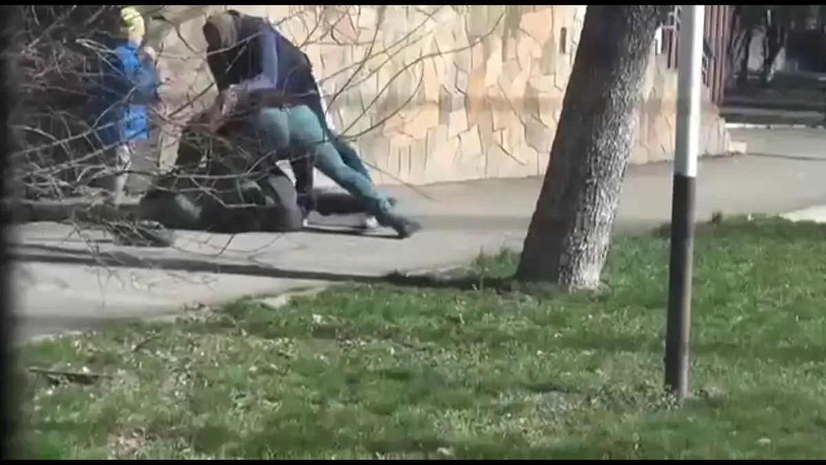 Появилось видео нападения силовиков на адыгейского активиста во время прогулки с сыном в желто-синей одежде