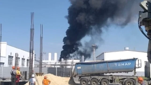 На нефтеперерабатывающем заводе в Ростовской области произошел пожар. По данным Baza, по нему был нанесен удар беспилотником