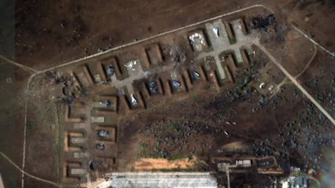 ISW: спутниковые снимки авиабазы в крымской Новофедоровке после взрывов подтверждают уничтожение не менее восьми российских самолетов