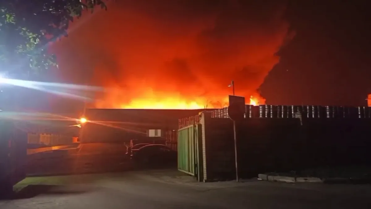 Загорелись пластиковая тара и поддоны, площадь пожара составила 600 квадратных метров, площадь зоны возможного заражения составила 1,65 квадратных километров, отчитались в «МЧС».