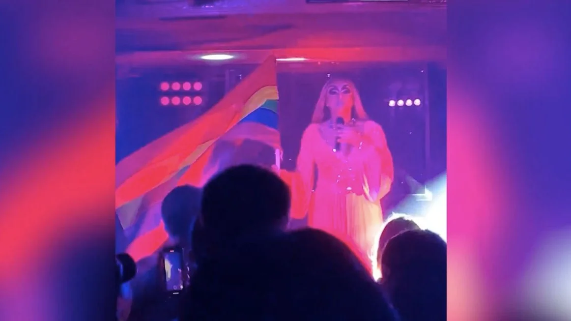 Дрэг-артист и ветеран Чечни «Бомба Киберсиси» стал фигурантом административного дела за исполнение гимна России с ЛГБТ-флагом в руках