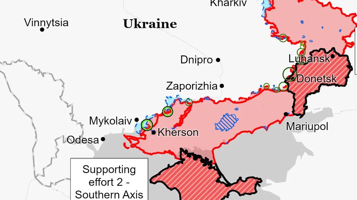- •Идет уже 175-й день войны России против Украины. Российские войска, вероятно, смогли частично установить контроль над несколькими населенными пунктами в Донецкой области, сообщает Институт изучения войны (ISW). По его данным, армия РФ провела «частично успешные» наземные атаки в направлении Новомихайловки (30 км к юго-западу от Донецка), а также нанесла удары по Павловке и Курахово. Также сообщается, что российские войска продвинулись в селах Сладкое и Егоровка, которые ранее были под контролем ВСУ.
