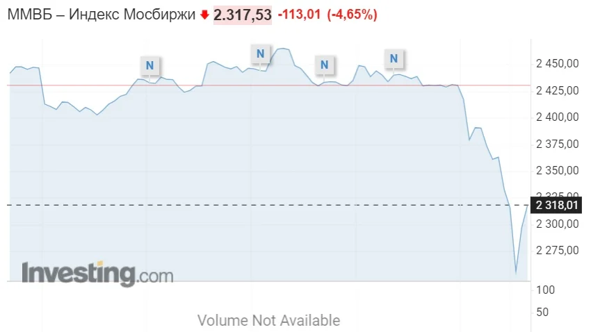 Индекс Мосбиржи упал более чем на 10% на фоне новостей о референдумах в «ЛДНР»