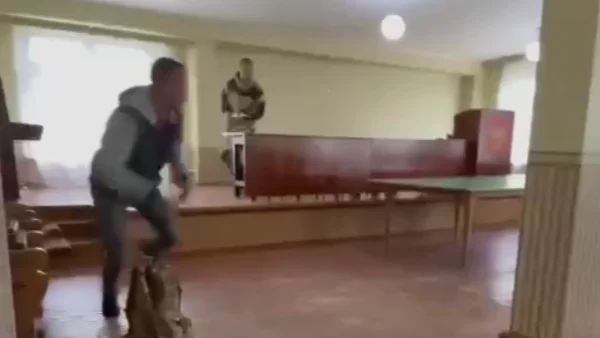 На видео, опубликованном в соцсетях, человек с оружием делает один выстрел и люди в военкомате с криками убегают.