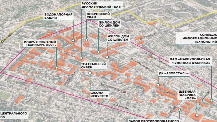 Кроме того, в историческом центре Мариуполя планируется восстановить Драматический театр, в результате обстрела которого российскими войсками в марте погибли около 300 человек. В плане указано новое название для него — «Русский Драматический театр».