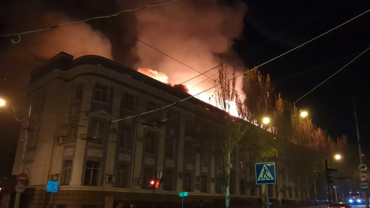 - •Ночью 7 ноября в Донецке прогремело несколько взрывов. Несколько снарядов, по информации местных телеграм-каналов, взорвались в районе администрации в Ворошиловском районе Донецка, попадание было и по зданию железнодорожной администрации. Во время атаки были повреждены здания, в них повыбивало окна, здание железнодорожной администрации охватил пожар. По данным экстренных служб, погибших нет.