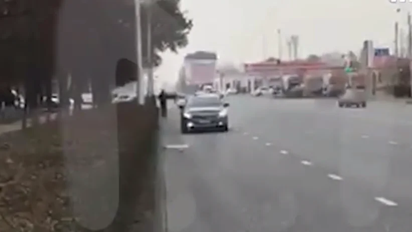 На видео, которое опубликовал телеграм-канал Mash, заметно, как человек в черной одежде выбегает на проезжую часть, после этого раздается несколько выстрелов и он падает. Мужчина через некоторое время снова поднимается на ноги, затем слышно еще несколько выстрелов, и он опять падает.