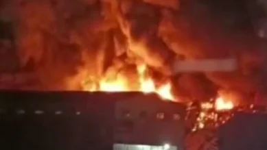«На момент прибытия пожарных стены и кровля склада были охвачены пламенем. На данный момент площадь пожара составляет около 1100 квадратных метров, произошло обрушение кровли», — говорилось в сообщении.