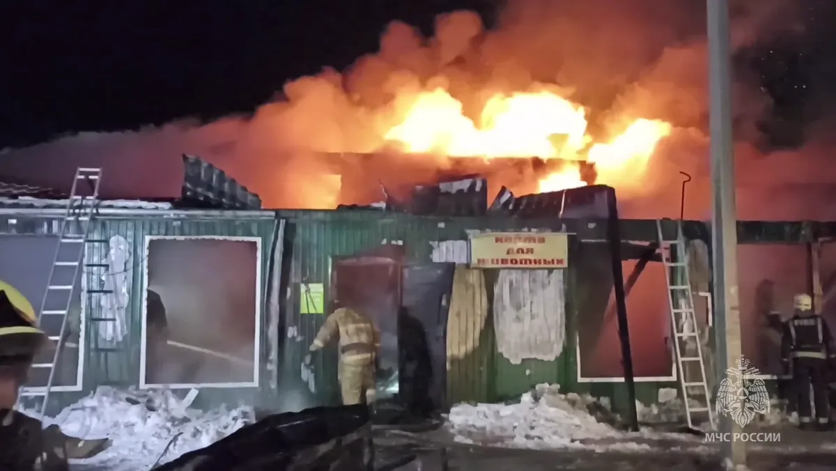 Сигнал о пожаре поступил поздним вечером. На момент прибытия сотрудников экстренных служб площадь возгорания составляла 180 квадратных метров, огнем была охвачена кровля. Пожару был присвоен высокий ранг сложности, утверждает ТАСС.