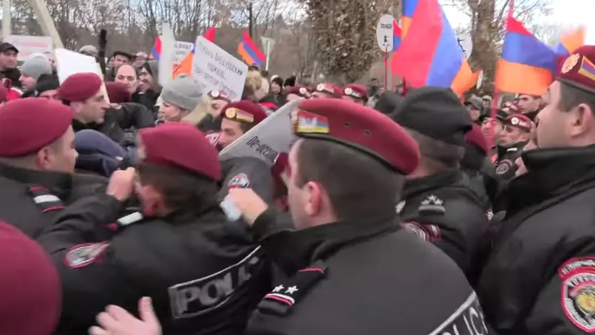 Вокруг базы были размещены сотрудники правоохранительных органов Армении. Между ними и протестующими произошли стычки. «Полицейские предупредили собравшихся, что те не должны перекрывать доступ к зданиям в зоне митинга, после чего задержали некоторых из них», — говорится в публикации «Sputnik Армения». По информации издания, остальные протестующие отправились обратно к монументу.