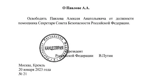 Владимир Путин уволил Алексея Павлова с должности помощника секретаря Совбеза РФ