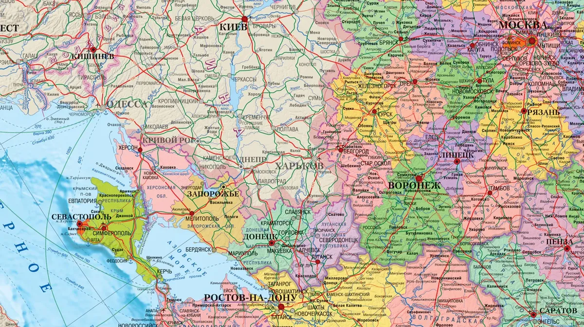РБК: в московские книжные магазины поступили карты с Донецкой, Луганской, Запорожской и Херсонской областями в составе России