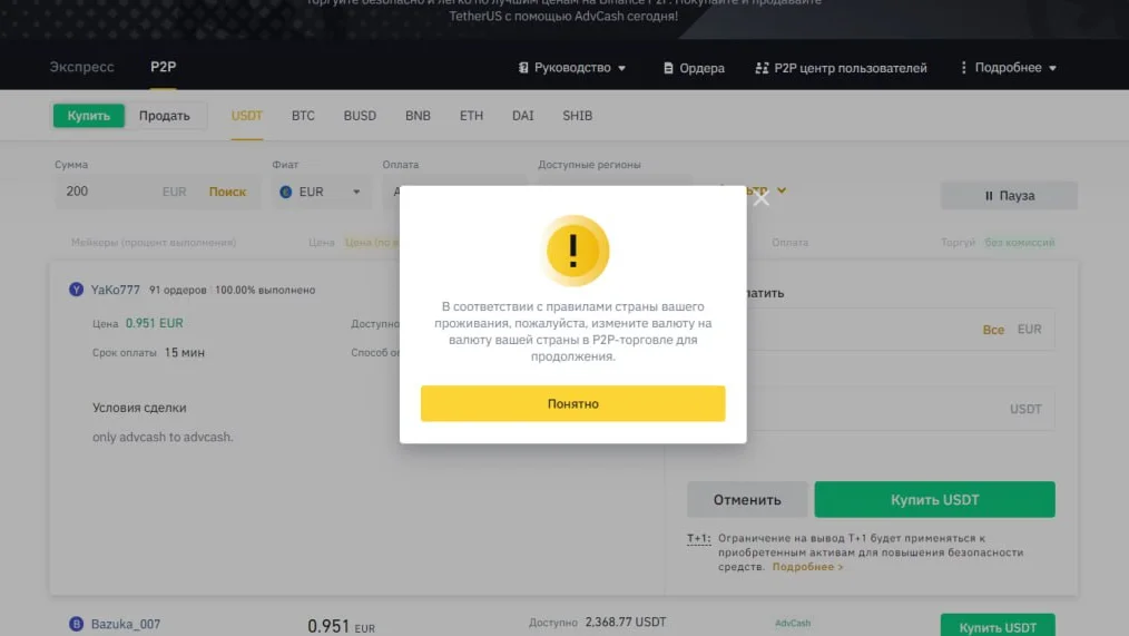 Forbes: криптобиржа Binance закрыла для россиян покупку и продажу долларов и евро через P2P-сервис