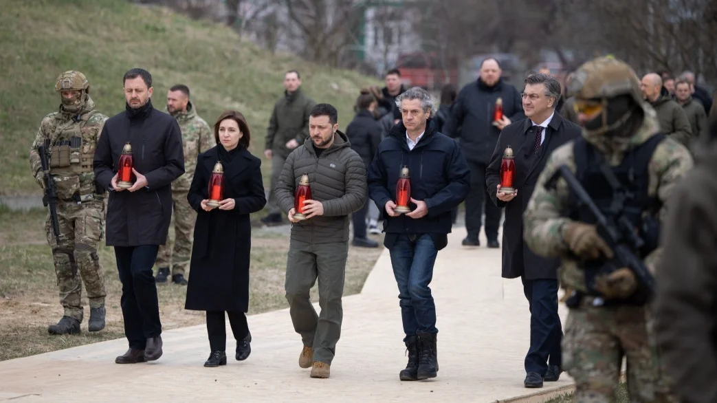 Также сегодня Зеленский и главы иностранных государств и правительств почтили память жителей города Бучи. Церемония прошла возле церкви Святого апостола Андрея Первозванного и всех святых. Там присутствовали президент Молдовы Майя Санду, премьер-министр Словакии Эдуард Хегер, премьер-министр Словении Роберт Голоб, премьер-министр Хорватии Андрей Пленкович, а также украинские политики.