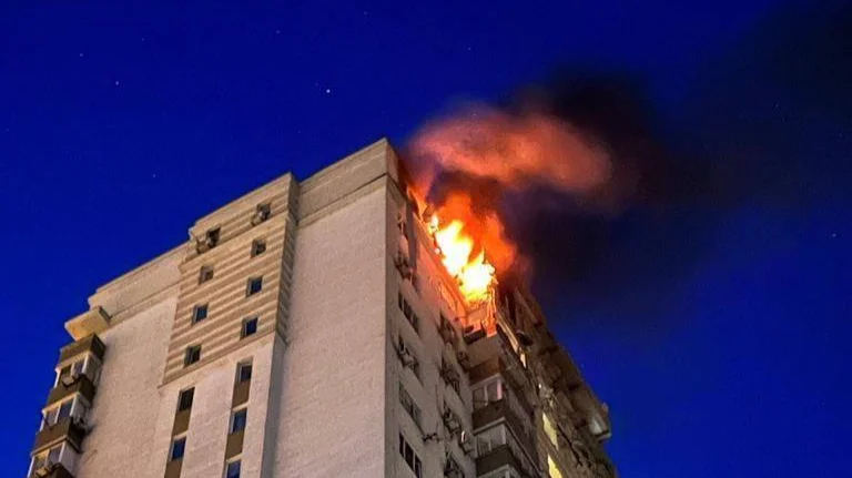В Голосеевском районе Киева обломок БПЛА упал на многоэтажный жилой дом, на последних двух этажах возникло возгорание, эвакуированы более 20 жителей. Предварительно, один человек погиб, три получили ранения.