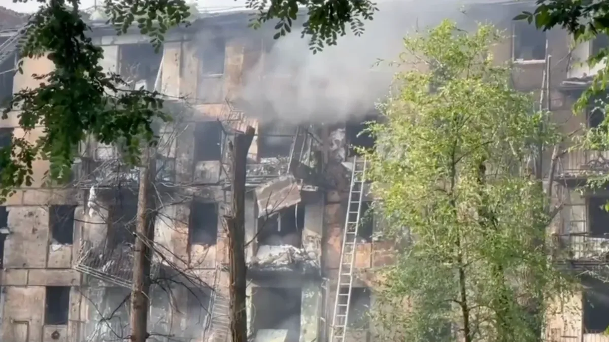Сразу после попадания ракеты в жилом доме начался пожар. Горели квартиры с первого по пятый этаж.