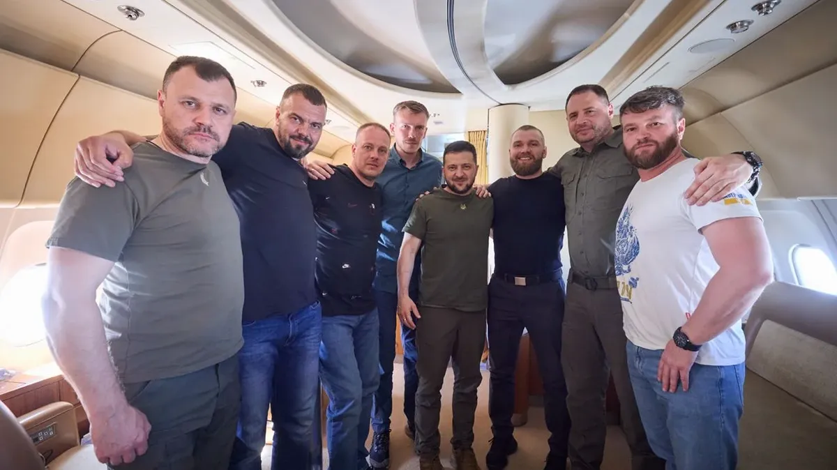 «Мы возвращаемся домой из Турции и везем домой наших героев. Украинские военные Денис Прокопенко, Святослав Паламарь, Сергей Волынский, Олег Хоменко, Денис Шлега. Они, наконец, будут со своими родными», — написал Владимир Зеленский в своем телеграм-канале.