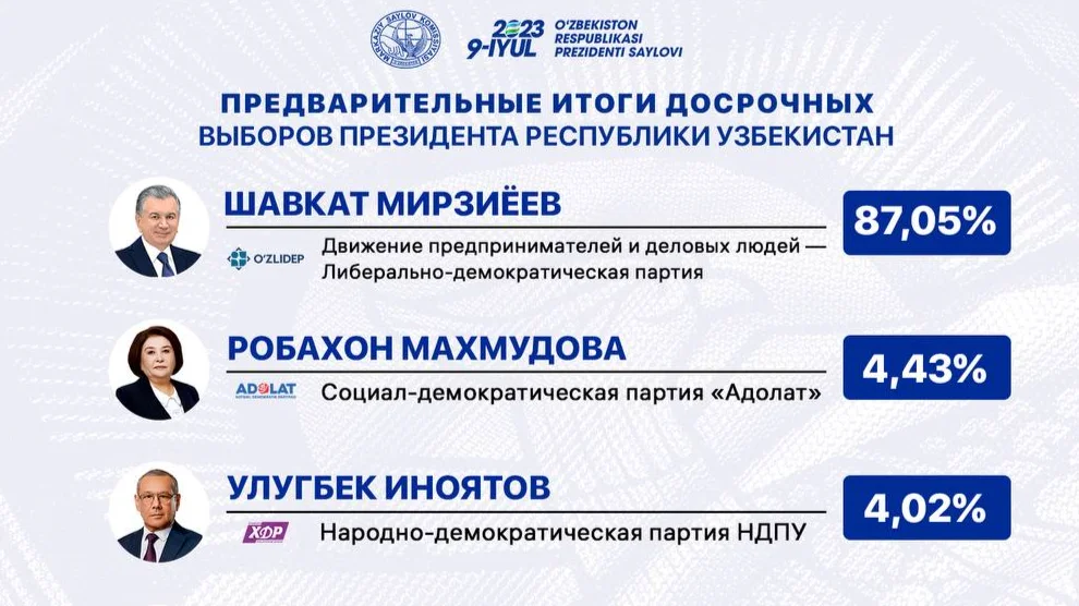 Действующий президент Узбекистана Шавкат Мирзиёев победил на досрочных выборах