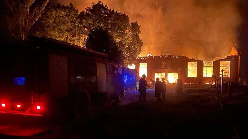 По его словам, ракета попала в нежилое помещение, в результате чего начался масштабный пожар.