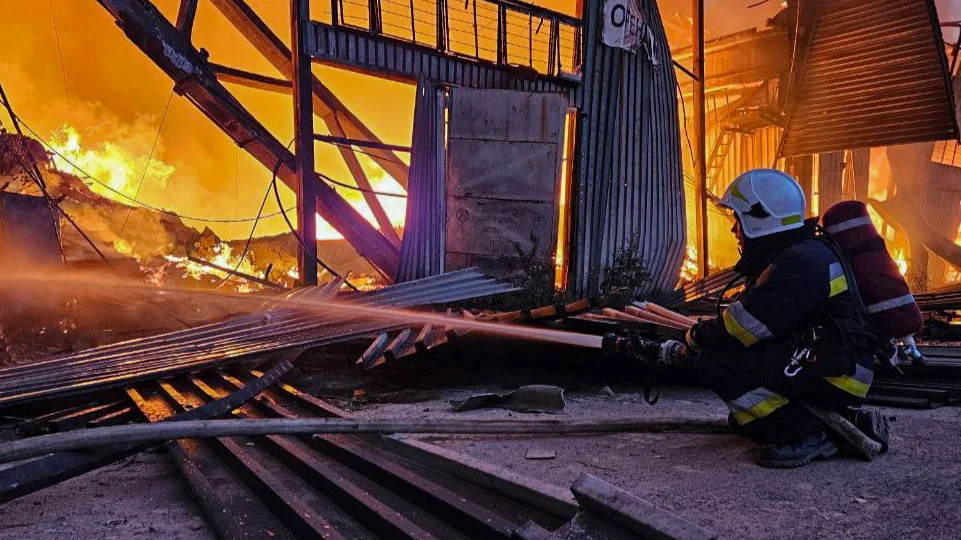 В ГСЧС Украины сообщили, что город атаковали российские беспилотники, в результате возник пожар трех складских построек на площади почти 10 тысяч кв.м. Ликвидация пожара продолжается.
