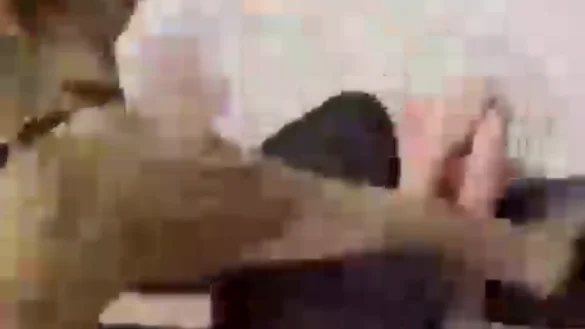 На видео молодой человек в камуфляжной форме избивает арестованного ногами и руками, а тот пытается закрыться от ударов.
