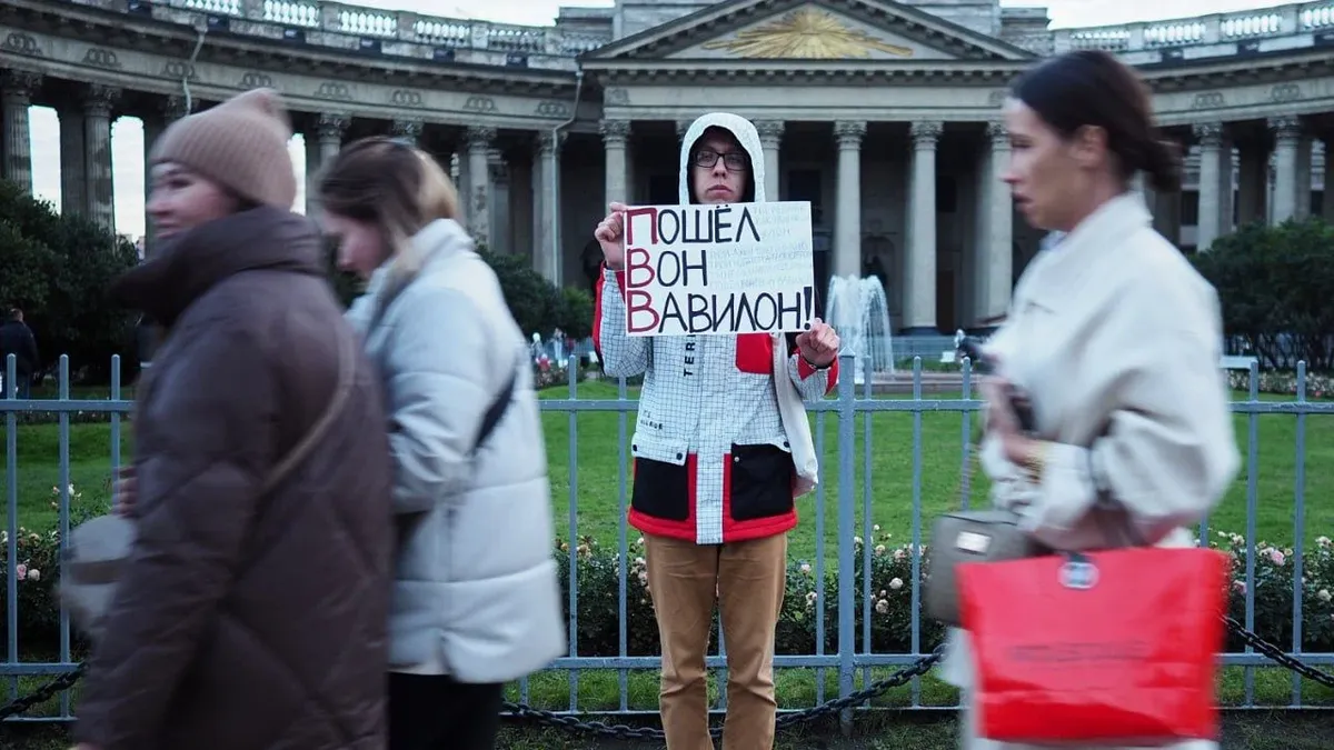 Как сообщает «Бумага», вечером 10 октября Кузьмин снова вышел на антивоенный пикет к Казанскому собору в Санкт-Петербурге. Активист взял с собой плакат «Пошел вон, Вавилон». Полиция его пока не задерживает.
