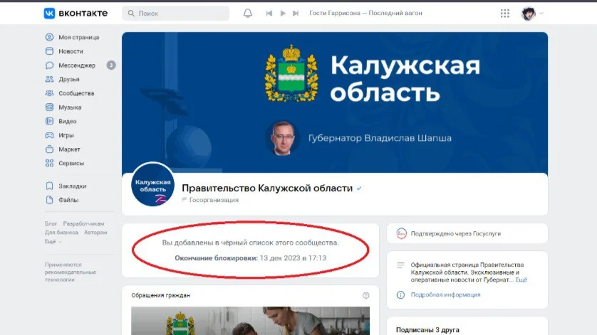 В группе правительства Калужской области заблокировали жену мобилизованного за вопрос о ротации