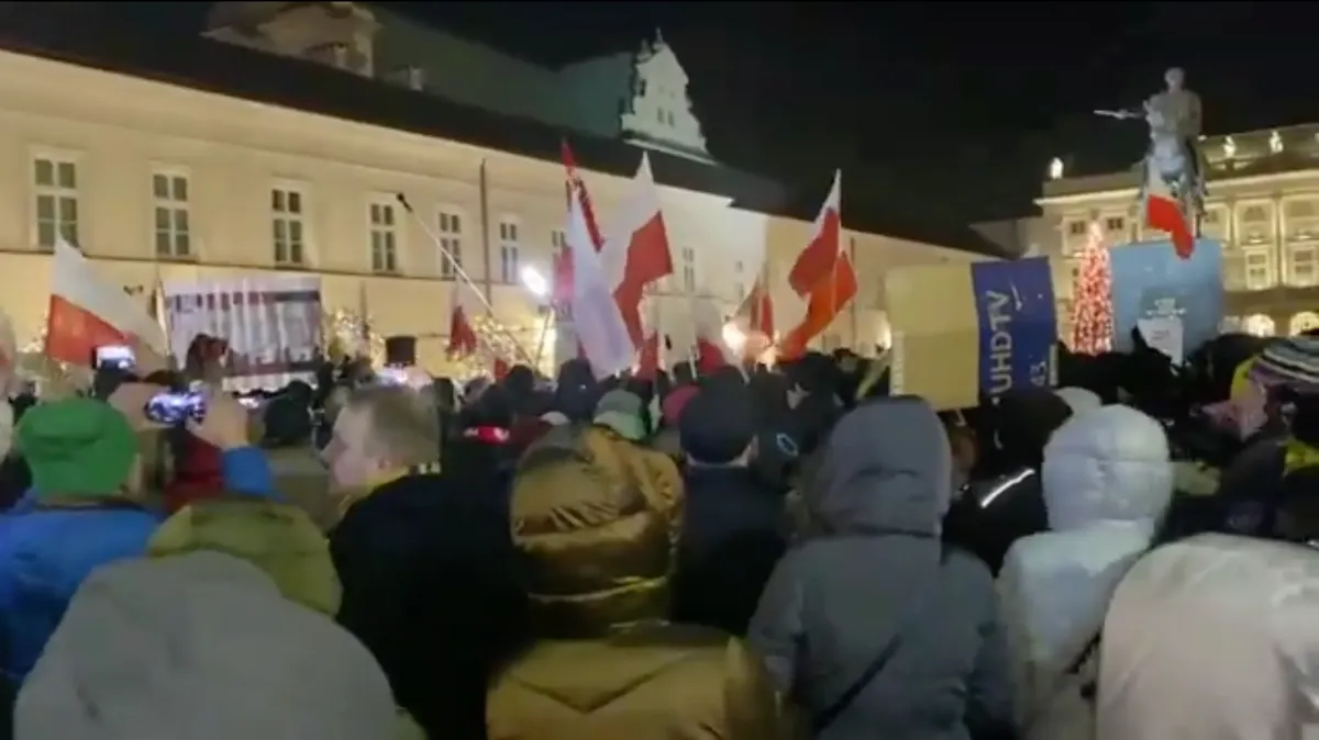 На фоне новости о задержании экс-главы МВД Польши и его заместителя граждане страны устроили протестную акцию у президентского дворца. Всего на ней присутствовало около 300 человек.