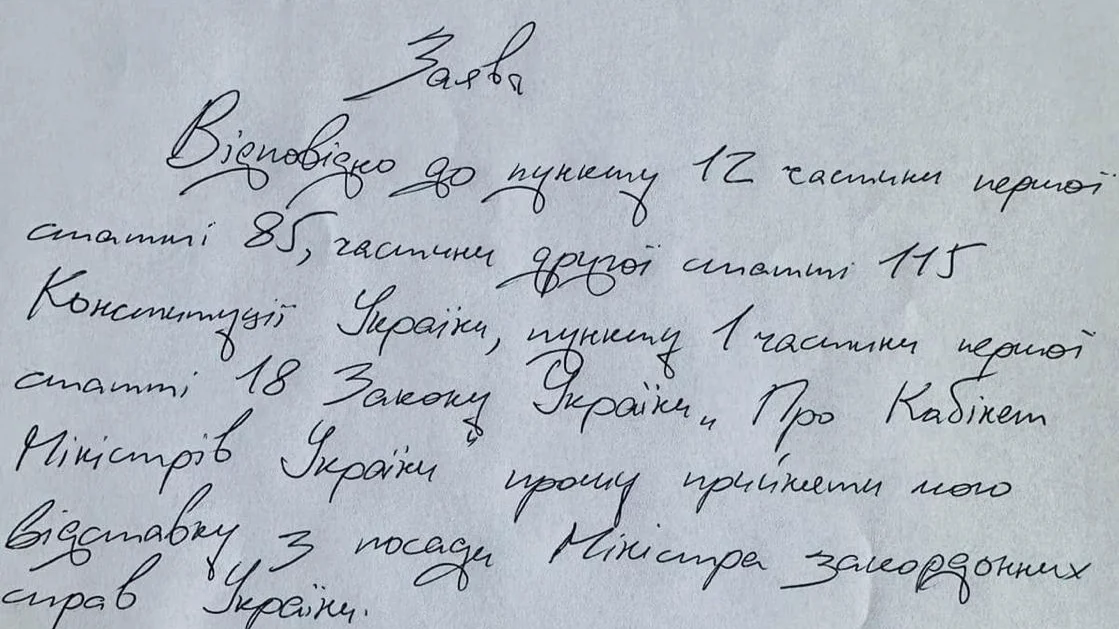 Глава украинского МИД Дмитрий Кулеба подал в отставку