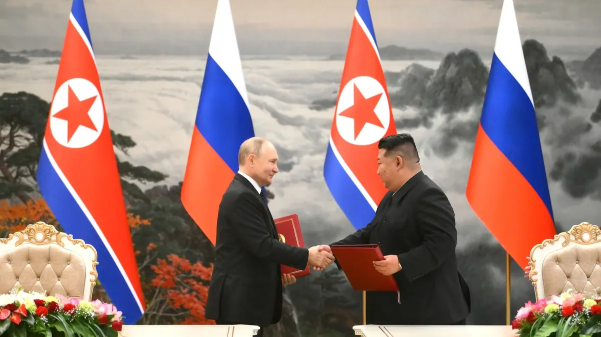 В договоре о всеобъемлющем стратегическом партнерстве между Россией и КНДР есть секретный пункт, позволяющий Северной Корее отправить порядка тысячи военных на войну в Украине. Об этом сообщила The Wall Street Journal со ссылкой на источники в российской разведке.