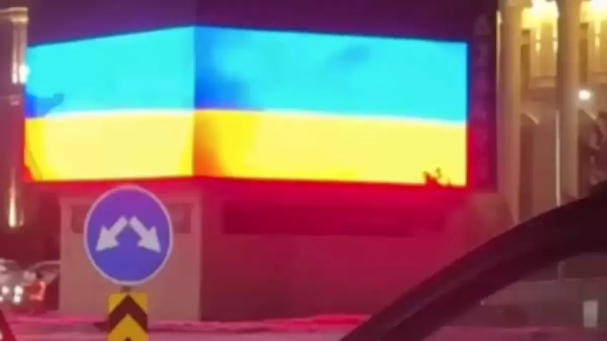 Во время визита Путина в Астану на одном из уличных экранов появился флаг Украины