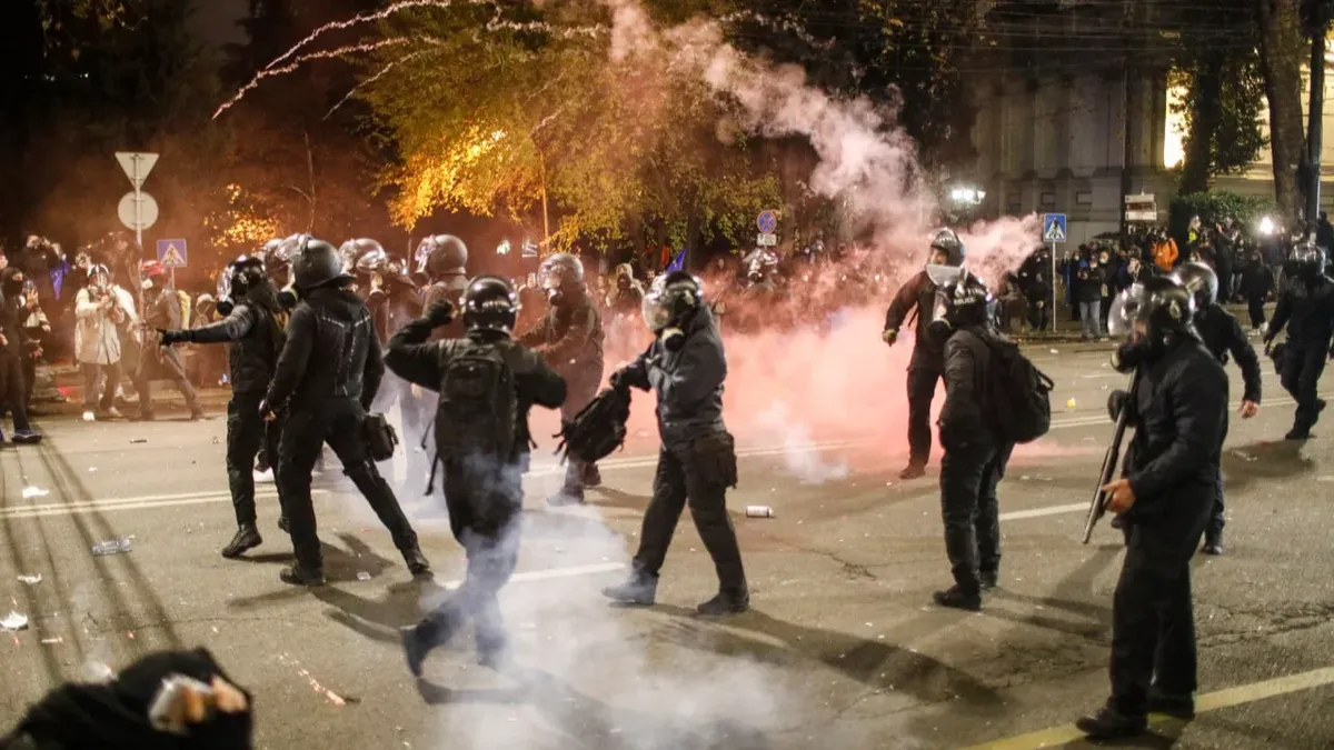 В Тбилиси полиция силой разогнала протестующих, те атаковали силовиков салютами. Задержаны 107 человек
