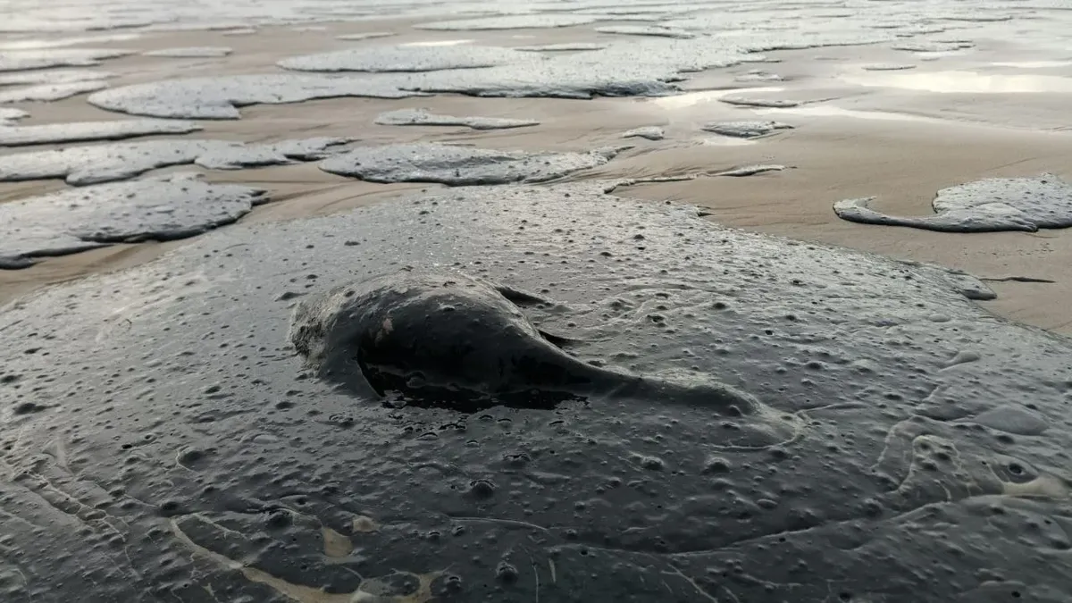 Десятки километров берега в Краснодарском крае загрязнены мазутом после крушения танкеров в Черном море