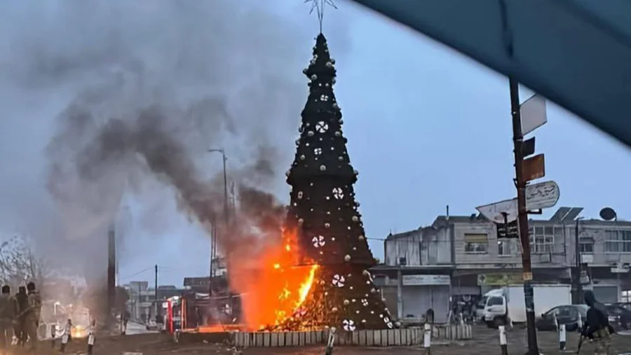 В Дамаске христиане вышли на протесты после того, как исламисты подожгли рождественскую ель