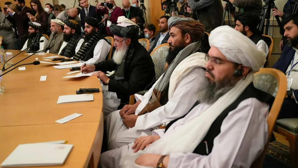 Члены «Талибана» на переговорах в Москве 20 октября 2021 года. Фото: Alexandr Zemlianichenko / EPA-EFE