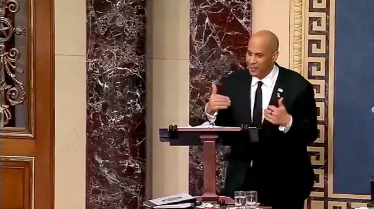 Политик начал свою речь 31 марта в 19:00 (1 апреля, 2:00 мск) и пообещал говорить «столько, сколько я физически смогу». Закончил свое выступление Букер вечером 1 апреля.