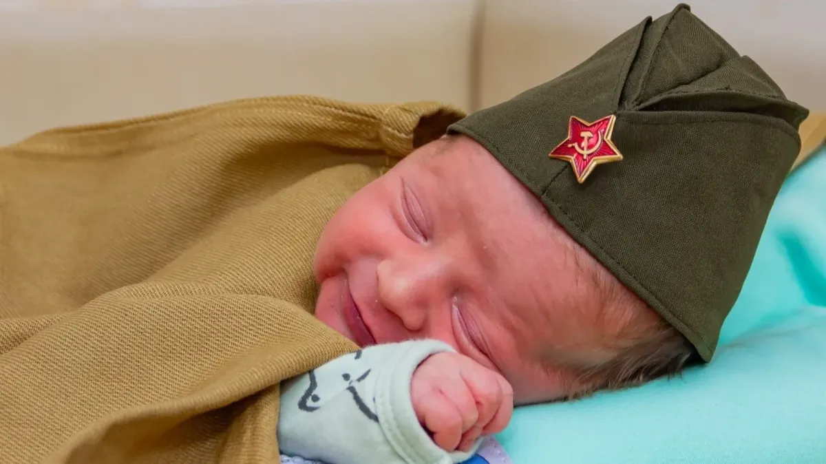 В роддоме подчеркнули, что акция приурочена к 80-летию победы в Великой Отечественной войне. На младенцев надевают пилотки и плащ-палатки, их шьют медсестры.