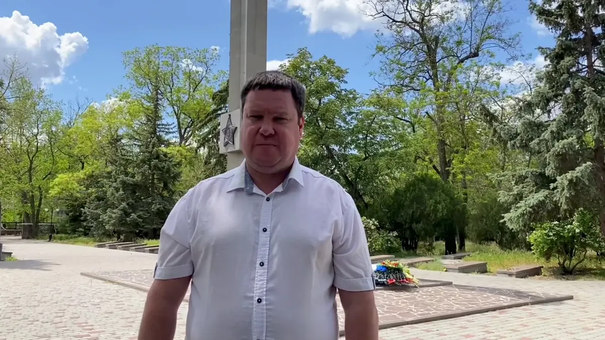 Оккупационный глава Новой Каховки записал извинения за видео, на котором он матерился на фоне памятника героям войны