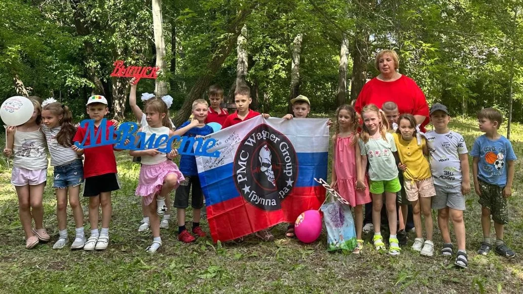 В связи с этим участники войны пришли на выпускной, чтобы поблагодарить дошколят, их родителей и воспитателей. Детям «на память» вручили шевроны ЧВК «Вагнер», также одному из воспитанников дали «особый знак» ЧВК «за его патриотический дух».