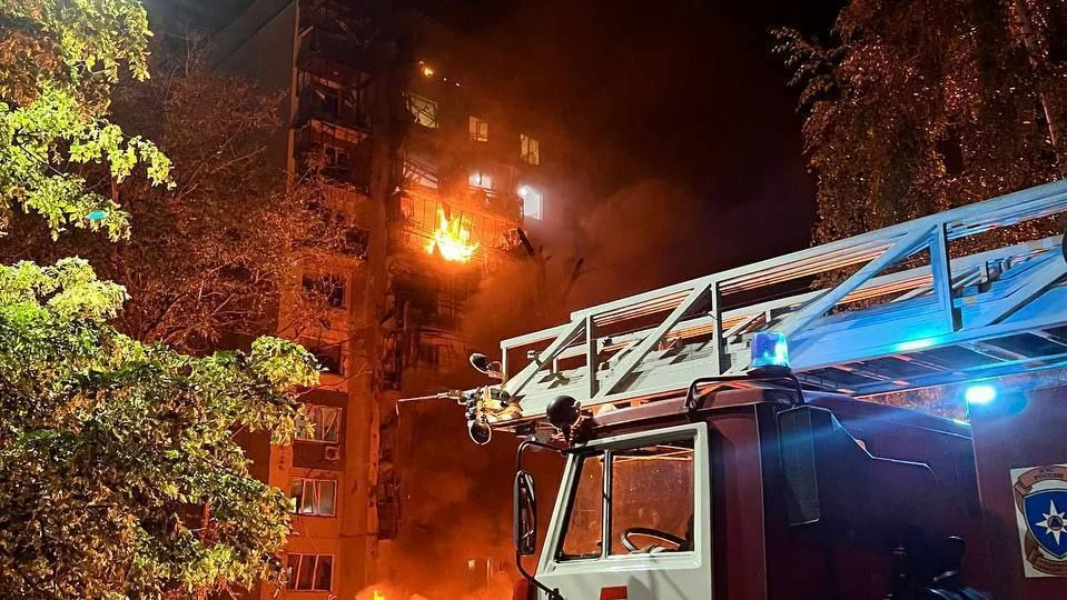 Также серьезные повреждения получил сам жилой дом, в который врезался беспилотник, отметил Хинштейн. По его словам, пожар из-за попадания дрона возник на четырех верхних этажах, сейчас он уже потушен. Также взрывная волна выбила стекла в соседних домах и школе.