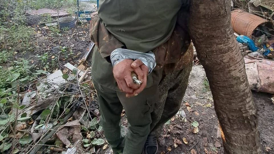 Мужчин связали друг с другом изолентой, у одного из них в руках лежала граната