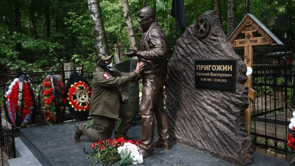 Обвиняемый в осквернении могилы Евгения Пригожина уйдет на «СВО». Он клеил на памятник основателя «Вагнера» плакат с надписью «Петух»