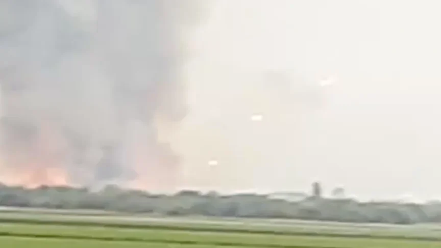“The fire triggered the detonation of stored ammunition. Reports from the scene suggest that there have been no serious injuries,” the ministry stated.