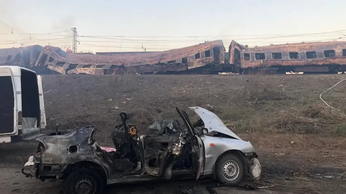 According to Zelensky, the missile hit a passenger train at the Chaplino railway station, resulting in four carriages catching fire.