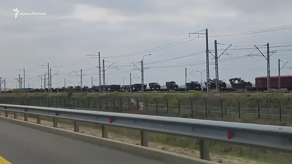 The video featuring military equipment at the railway station Taman, located near the entrance to the Crimean Bridge, was also shared by outlet Krym.Realii. The outlet reports, citing its readers, that there are engineering and sapper vehicles, howitzers, tanks, infantry fighting vehicles, and trucks on the railway platforms.